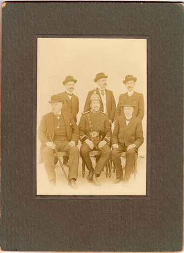 O Bombeiro na foto, em baixo ao centro, poderá ser o comandante Claudemiro Teixeira da Silva dos BV de Paredes de 1889 a 1900.