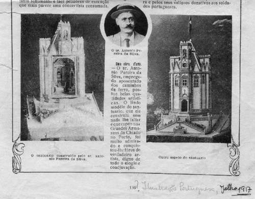 Autor da construção da miniatura é o meu Tio-bisavô António que a fez depois da Igreja matriz ser feita, segundo me disseram meus antepassados, portanto posterior a 1908. A vontade dele depois da sua morte foi que ficasse para o meu avô Sebastião, seu sobrinho, e depois permanecesse na casa ou na impossibilidade fosse doada ao museu. A sua vontade foi cumprida pelo meu tio Fernando Meireles.